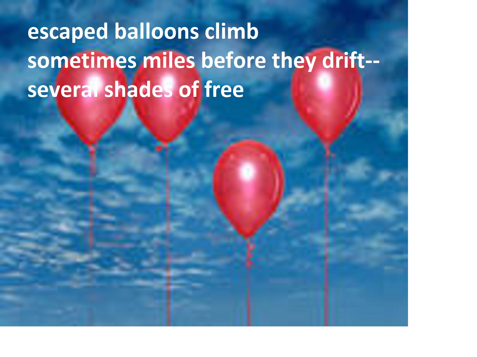 How very lovely and apt. Balloons to celebrate and the exhilaration of freedom. beautifully done, my friend. 🙂