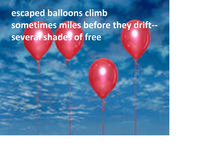 Great haiku, very nice written and very joyful … balloons what a party … really it’s wortth a party when you succeeded the September Heights challenge. Thank you for all the wonderful verses you have shared with us.